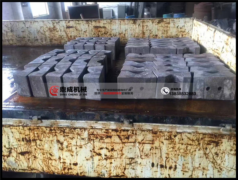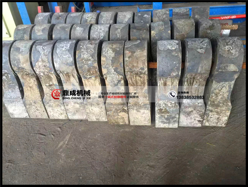 鼎成細碎機錘頭采用高鉻26合金、高鉻高釩28合金、高鈦35合金,或者根據(jù)工況條件特殊配料,根據(jù)客戶來圖來樣定做各類異形細碎機錘頭。鼎成高鉻錘頭做工細膩,配料嚴謹,熱處理到位,細碎機高鉻錘頭使用壽命比同類產(chǎn)品耐磨50%以上。