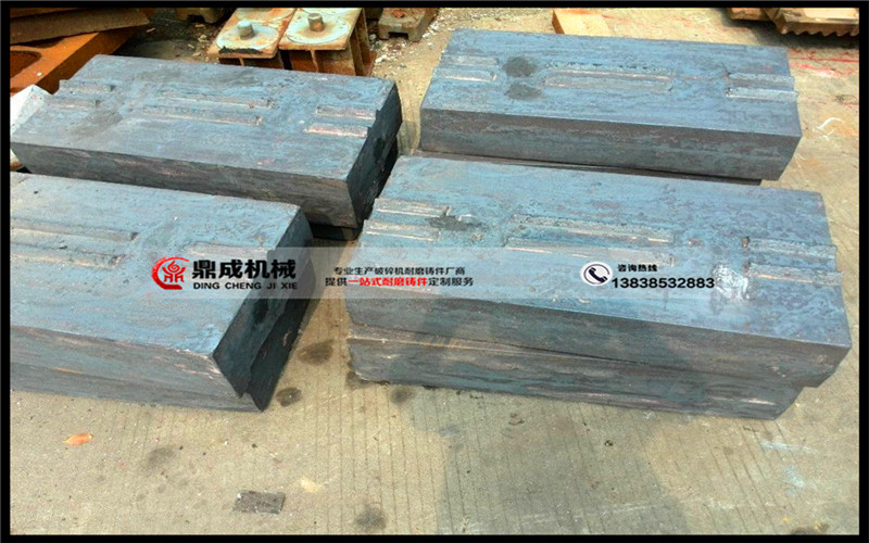 一是破碎機板錘材料選擇不當。一般的破碎機板錘材質選型不當,導致硬度和韌性無法達到工藝要求。鼎成機械采用的雙金屬復合工藝生產的破碎機板錘大大提高表面硬度和耐磨性能,不但韌性好、強度高、工藝性好,有一定的硬度,其耐磨度是普通板錘的2-3倍。